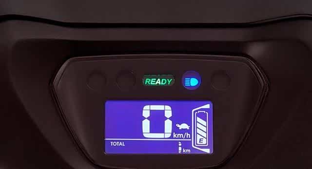 仪表盘为数显液晶屏,虽然尺寸小,但是对于一款电动摩托来说好像也没有更多的参数需要展示,并且车速以及电量等关键信息读取起来更加清晰直观,实用性很强。踏板宽度为400*310mm,脚部能够轻松舒展。