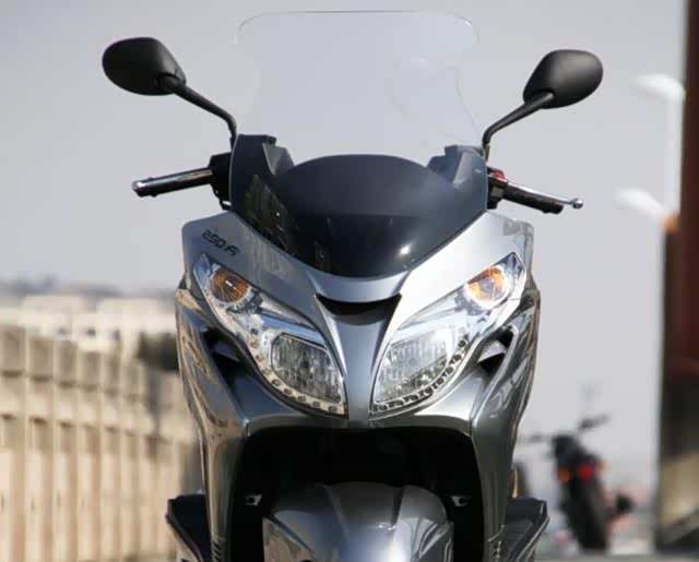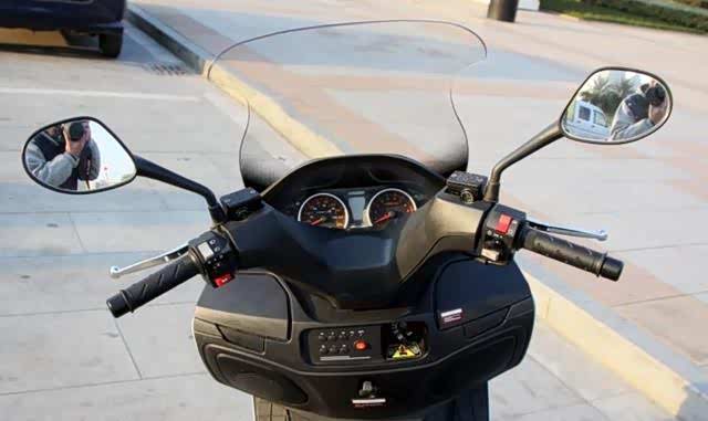 前脸造型霸气十足,灯组还会采用复合眼设计,科技感强烈,然而该车也因为成本的原因会降低配置,比较遗憾的是全部采用卤素光源。日雅帅领RY250T配超大面积风挡,对于一款大绵羊踏板来说这更能彰显它的身份。