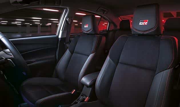 ViosGR-S的内饰也表现出更大的个性化,黑色细节搭配红色缝线绒面革和皮革包裹的运动型座椅,头枕上带有压花的GR徽标、三辐式皮革包裹方向盘、皮革包裹换档杆和GR压花的地毯。按下印有GR徽章的启动键可以让您知道驾驶的是一部良种的Vios,因为红色的Optitron仪表盘(带红色指针)和4.2英寸的多信息显示屏上的GR动画将进一步证实这一点。