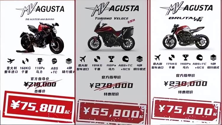 车家号·0浏览·2024-01-05 09:20 · 湖北直降20多万,摩托车还能这样卖吗?近日,欧洲著名品牌MV奥古斯塔,旗下800系列车型狂降20多万,原价278000元的Turismo Veloce 800旅行车,目前仅需要65800元起!都说降价内卷是今年的主流,没想到降幅最狠的还得是意大利品牌。