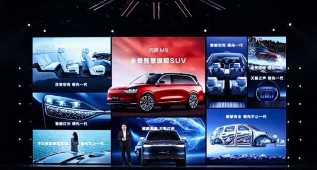 50万元,新能源汽车的分水岭。在新能源渗透率达到40.4%的今天,50万级以上销量排行榜上,依然是我们熟悉的燃油车老朋友:奔驰、宝马、奥迪。可以说在电动化时代,50万级是BBA的最后一块自留地:销量可观、品牌叫座、利润率高、新能源渗透率低,站着就把钱赚了。因此,这也成了自主品牌人人眼馋的领域。先有理想L9和腾势D9登场;最近,华为盯上了这块「肥肉」。12月26日,几乎预热了一整年的 问界M9(参数|询价)终于上市。「1000万内最好」「地表最强」……在介绍这款车时,余承东几乎把广告法中的违禁词说了个遍,足以看出华为对这款车的重视。从定位来看,抛开发布会PPT上频频亮相的库里南、迈巴赫,问界M9更实在的对手是宝马X7、路虎揽胜,以及理想L9。从尺寸上来看,这几款车都是全尺寸SUV:从价格上看,问界M946.98~56.98万元的起售价比理想L9Max还贵了1万元,而且不同于理想的「全系标配」,问界M9真金白银的选配不少。至于能否抢到BBA最后的圣地呢?就要看问界M9的配置能不能打动大家了。除了「冰箱彩电沙发」「1000万级SUV」还有什么黑科技?「冰箱彩电大沙发都是小康水平,不是真正的豪华」。今年4月的上海车展前夕,余承东曾经这样预告问界M9。火药味儿也好,实话实说也罢,对于问界M9这样一款起售价46.98万的D级豪华SUV,是需要一点儿堆料以外的东西证明自己。在看完了余承东全场1个多小时、200多张PPT的介绍后,问界M9这车给我最大的感受就是:座舱「大力出奇迹」,整车全是「黑科技」。可以说华为这些年在汽车上投入的200多个亿,总算找到展示的舞台了。01座舱「大力出奇迹」前段时间,问界M9提前公布了一些座舱的细节,在《座舱细节公布,你的问界M9已解锁99.99%》中我们进行了分析;随着M9的正式上市,剩下的0.01%的面纱也被掀开了。在以前的座舱情报局中,我们曾用「大力出奇迹」来形容奔驰S级,现在看来,这个词用在问界M9身上更合适。比如,大6座SUV都卷「冰箱彩电沙发」,于是问界M9在车里给了「10个彩电」的选项:除了常规的「仪表+中控+副驾」的三联屏设计外,第二排和第三排还支持MagLink接口,可以扩展4个后排娱乐屏;如果不够,还有32英寸升降式投影幕布,相比于后排折叠屏更节省空间,也不耽误停车时的使用体验;如果还不够,75英寸的ARHUD也支持看视频;如果是屏幕重度依赖患者,M9还提供了百万像素的HUAWEIxPixel大灯显示剩余充电时长,或者光毯,或者投影看视频……在「沙发」上也同样,都流行卷零重力座椅,问界M9就提供了副驾+二排的双零重力座椅,而且二排座椅放倒时,副驾可以收起来变成脚托。相比于其他车型,全尺寸SUV车主对空间需求更大,于是问界M9在空间上让三排乘客都有1m左右的空间,第三排空间也有950mm;更需要收纳空间,于是车内有主驾保险箱、副驾侧边柜等41个储物空间;更关注后排用户的体验,于是给六个座位都配备了单独的充电口、杯托、手机槽、HUAWEIMagLink插口……可以说能通过数量解决的问题,问界M9直接拉满了。接下来就是体验的质感了。比如,「旗舰行政SUV」关心的隐私问题,问界M9做了隐私声盾功能,原理有点类似于降噪耳机:当后排乘客交谈时,主驾头枕音响的抵消扬声器能开启降噪功能,后排聊生意也不怕被司机听到。双层静音玻璃、整车主动安全降噪技术可以将匀速120km情况下的行驶噪声,降至60.9分贝,满足了安静、私密的需求。02整车「全是黑科技」与不久前上市的智界S7一样,问界M9也搭载了华为的途灵底盘、巨鲸800V高压电池平台、华为ADS2.0和鸿蒙座舱4.0。而且相比于智界S7,身长超过5米2的问界M9还要解决大车不好开的问题。我们先来看一下性能,问界M9有纯电和增程两个版本。增程版本的峰值功率为365kW,零百加速4.9s;增程版中52度电池的纯电续航为275km,综合续航1402km;42度电池的纯电续航为225km,综合续航1362km。纯电版M9搭配华为自研、联合宁德时代共同打造的「巨鲸」800V碳化硅高压电池平台,电机最高转速22000转,峰值功率为390kW,零百加速纯电为4.3s。在「巨鲸」800V高压平台加持下,问界M9最高充电功率310kW;高压快充5分钟,续航150km。在底盘方面,问界M9搭载了华为的途灵智能底盘,采用前双叉臂后多连杆独立悬架,全系标配智能闭式空气悬架和CDC可变阻尼减震器。基于HUAWEIiDVP智能汽车数字平台,途灵智能底盘可以每秒20次扫描路面,实时根据路况调节悬架和扭矩。针对大车不好开的通病,问界M9解决的方式是「猫头鹰」转向,把前轮最大转向角增加到41.75度,最小转弯半径5.8米,用余承东自己的话来说,「比Model3转弯半径还小,感觉像在开小车一样。」这样至少不用担心豪华品牌「付费xxxx解锁后轮转向」的操作了吧。除了底盘外,问界M9的车身安全性方面起了个新名字,叫「玄武车身」。具体来看,车身铝合金体积占比80%,白车身轻量化指数2.02;整体来说,轻量化指数在2.5以下就属于比较优秀的水平了。同时,M9采用了9000吨一体化压铸工艺,后车体的大型部件一体压铸而成。目前,除了最早使用一体压铸工艺的特斯拉,越来越多车企开始采用这项技术,在轻量化、提升生产效率和精度方面的优点还是很明显的。此外,全车有12处采用了2000MPa核潜艇级热成型钢。之前,极氪009的双A柱就采用了2000MPa热成型钢,这次问界M9的A柱、B柱、车门都采用了2000MPa热成型钢。整体来看,这套玄武车身的用料还是挺扎实的,余承东在发布会上专门展示了
