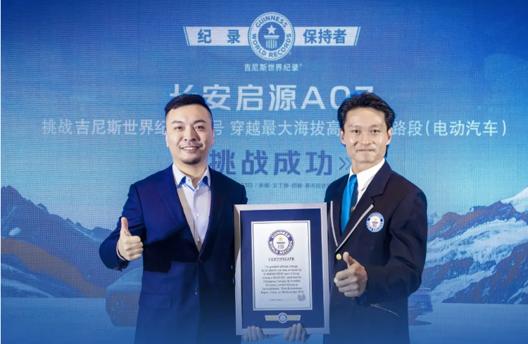 新的一年,新的挑战,长安启源品牌的当家花旦——启源A07穿越了海拔差高达5720.31米的极境之地,成功获得了吉尼斯世界纪录的认证。这也再次验证了启源A07所搭载的高性能数智AI电驱系统,其性能优秀、足够可靠。