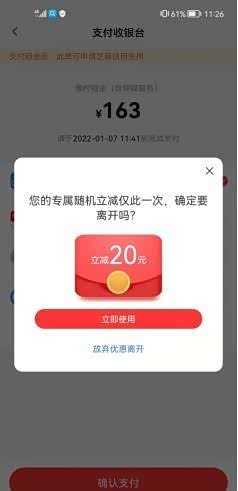 一般我们在选择好车辆的时候,都是直接就付款,但是恰恰它的隐藏优惠就藏在这一步,只要不点立即付款,而是先点击下左上角的“返回按钮”,就会如下图所示的立减红包。