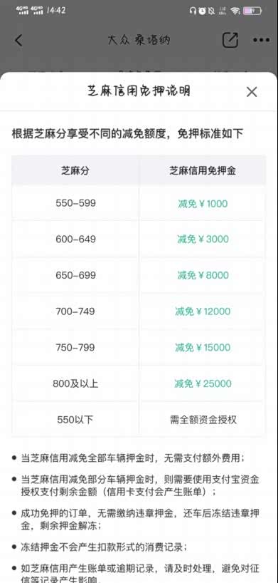 而拿现在来说,大部分的租车平台其实是都有上线了信用分免押服务的,也就是说,大家在租车的时候,只要授权信用分给到平台读取,就能免掉部分的押金,信用分越高,能免掉的押金就越高。