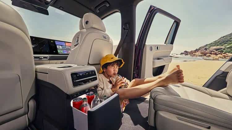 更多的模仿者也开始陆续出现了,甚至连问界M9上也搭载了三件套;不同的是,彩电变成了32英寸的投影大屏,大沙发被更为科技含量的零重力座椅取代,冰箱一直都是标配,仿佛这样的组合也逐渐变为了当下SUV家用车型的标配。