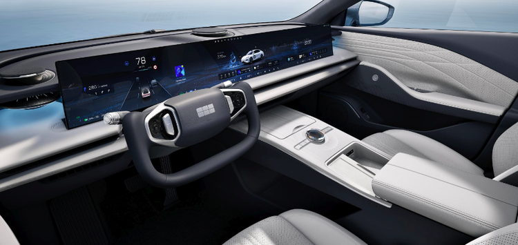 极越01的35英寸和银河E8的45英寸有些异曲同工,而未能成功的 拜腾 也曾试图创造出行业仅有的曲面联屏。