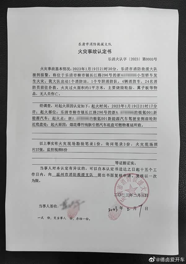 出现过燃烧的情况,但经过调查,均非车辆自身原因引起,比如去年春节期间,一台 极氪001(参数|询价)路边停车被附近燃放的烟花引燃,好在受损不严重;