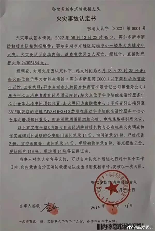 余承东多次公开提问界系列零自燃,见报的案例其实也有,最为知名的当属2022年发生在鄂尔多斯一购物中心的火灾