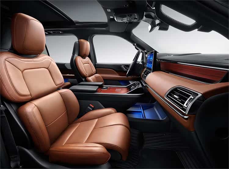【豪华配置:科技与舒适的结合】在科技配置方面,林肯领航员蓝银版同样表现出色。它配备了林肯Co-Pilot360TM 2.0智能助驾系统,为驾驶安全提供全面保障。同时,车内的7座布局提供了宽敞舒适的乘坐空间,尤其是第三排的空间表现尤为出色。