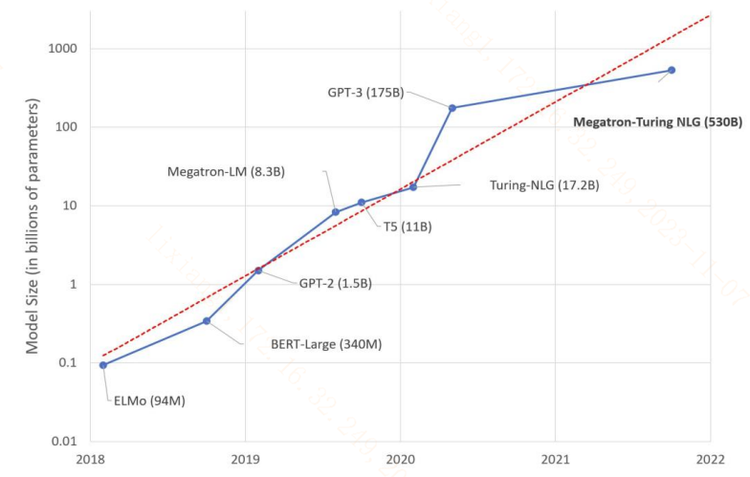 图:近年来超大模型预训练模型参数增长趋势