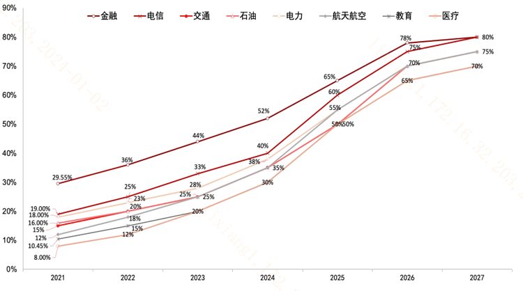 图:八大行业2021-2027年渗透率假设