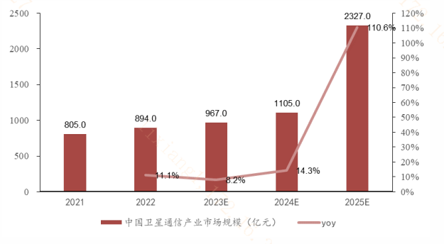 图:我国卫星通信产业市场规模