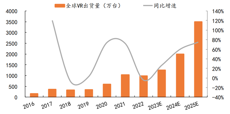 图:全球VR设备出货情况及预测