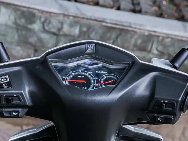 在配置上,豪爵 VM100E HJ100T-5C其实也没有令大家失望,虽然是一款不到7千的车型,但是豪爵 VM100E HJ100T-5C依旧采用了前碟后鼓刹,对于100cc排量的踏板来说,制动力足够使用。至于仪表盘,车子采用的大小指针盘设计,显示数据基础但很实用。