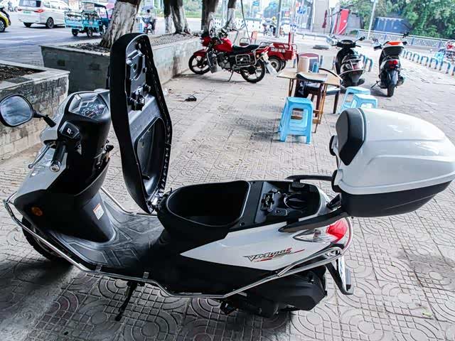 豪爵 VM100E HJ100T-5C实用性很强,车子长宽高尺寸分别为1770/675/1055mm,座高为720mm,配5.5L容量的油箱,虽然不够大,但是好在车子的油耗足够经济,续航在300公里左右。此外,豪爵 VM100E HJ100T-5C的装载能力也很强,除了前方的储物格,座桶,还可以加装一个尾箱,不用说日常代步接娃买菜,即便是跑外卖也非常合适。