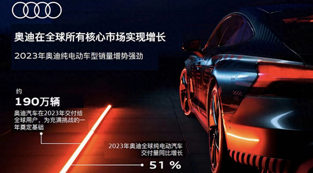 此外,2023年奥迪在全球市场纯电动车型销量为17.8万辆(欧洲及中国为主要市场),同比增长51%。