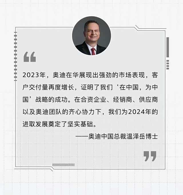 奥迪中国总裁(温泽岳博士)对中国市场的销量增长表示祝贺