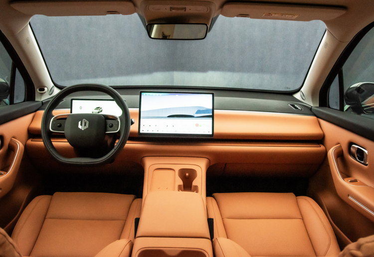 零跑C10的内饰采用的是目前比较流行的简约化风格,车内几乎找不到任何实体按键,并且通过大量横向线条来拉宽视觉宽度。中控区域匹配了全新的两辐式方向盘、10.25英寸全液晶仪表以及14.6英寸悬浮式中控屏。值得一提的是,它还内置了高通骁龙8295芯片,这也是目前性能最强的座舱芯片。