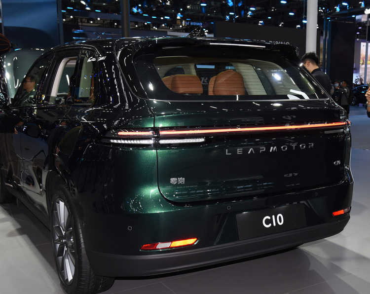 车尾部分,零跑C10的造型同样十分简洁,车顶配备有小尺寸的扰流板以及高位刹车灯,平直的贯穿式灯组也是目前比较流行的设计,灯组下方还拥有“LEAPMOTOR”标识,进一步增加视觉层次感。