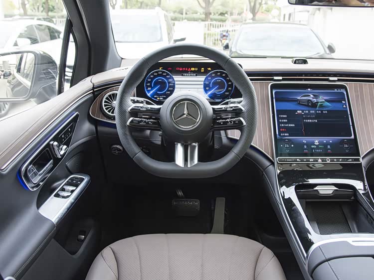 内饰方面,奔驰EQE SUV的内饰设计充满了豪华气息,深棕色的内饰配色和大面积的木纹饰板,呈现出了绝佳的高级质感,且座椅宽大厚实,提供了舒适的乘坐体验。而奔驰EQC的内饰设计尚未披露太多细节,但其将延续奔驰一贯的豪华与精致。
