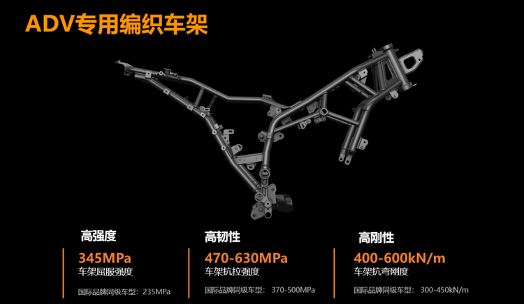 RX600的车架又是一大亮点,是赛科龙全新开发的ADV专用编织菱形环抱车架,并罕见地公布了车架的强度、刚性、韧性三大关键参数,均高于国际品牌同级车型。减震则采用国产一线品牌,前减震28段回弹阻尼可调,后减15段阻尼可调,配备前19、后17寸真空辐条轮,配CST子午线真空胎,刹车与RX401相同,前双碟每碟径向对四卡钳,后浮动式单活塞卡钳。