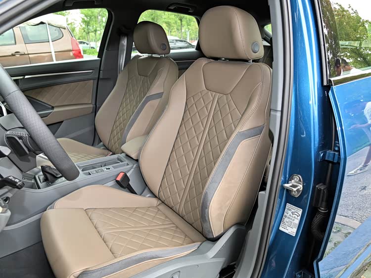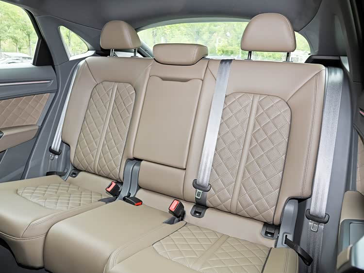 奥迪Q3 Sportback的轴距长达2680毫米,全系配备皮革/Alcantara混合材质座椅,运动风格十足,主副驾驶均支持电动调节,包括高低4向、腰部支撑4向、腿托调节等。尽管座椅略显硬朗,但前排的人性化体验仍然出色。