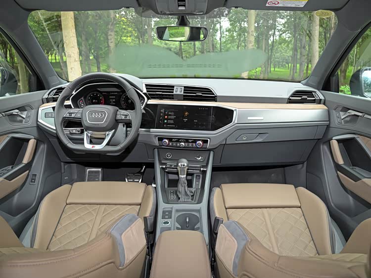 相较于普通版本的Q3,奥迪Q3 Sportback的内饰在中控台、空调出风口、座椅等区域增加了红色的线条,以突显其跨界车的定位。全系标配12.3英寸全液晶仪表盘及10.1英寸触摸显示屏。