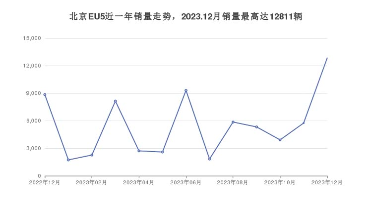 具体来看,该车型的车主,平均成交价在11.00-14.10万之间,首年保值率为61%,在同级别车中排名第51。销量方面,北京EU5,在2023年12月份的销量为12811辆,近一年北京EU5的,累计销量达到70994辆。