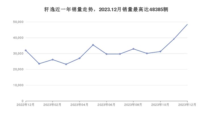 具体来看,该车型的车主,平均成交价在11.50-12.29万之间,首年保值率为86%,在同级别车中排名第8。销量方面,轩逸,在2023年12月份的销量为48385辆,近一年轩逸的,累计销量达到408080辆。
