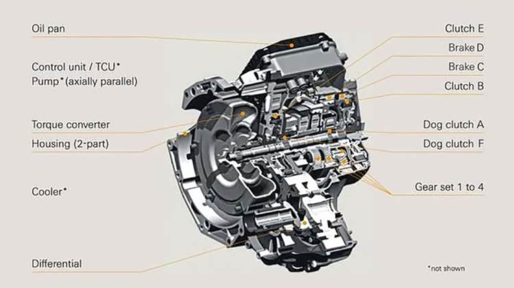 而ZF 9AT则是试图复制其在纵置8AT上的荣光,几乎全新设计开发的一款多挡位AT变速箱。与之开发背景类似的,还有本田那台横置10AT。新开发,也就意味着没有任何设计和成本上的包袱,或许正因如此,导致ZF 9AT的原始逻辑架构过于激进。如果说1挡的齿比,ZF 9AT与通用9AT,以及自家8AT都处于一个水平线上。那么ZF 9AT的2挡与1挡落差实在太大了,其3挡的齿比已经比肩通用的5挡(这里面有通用低挡位过于绵密的原因)。而且在坐拥9个前进挡的情况下,ZF 9AT居然有四个挡位都是超速挡,对应的ZF纵置8AT仅有2个。