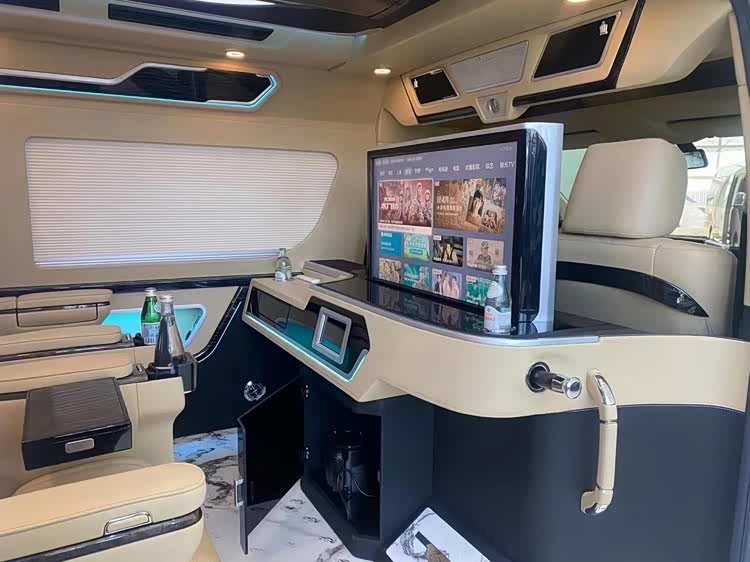 丰田海狮驶舱升级9寸导航,(华通丰业)搭配360度全车影像,桃木方向盘,升级了原厂桃木纹内饰改为进口豪华感顿显。主副驾驶座椅真皮包覆,主副驾驶座椅四向电动调节带通风加热,主副驾驶中间升级车载扶手冰箱。主副驾驶后面,加装了24寸高清液晶电视娱乐系统,全车升级阿尔派音响系统。
