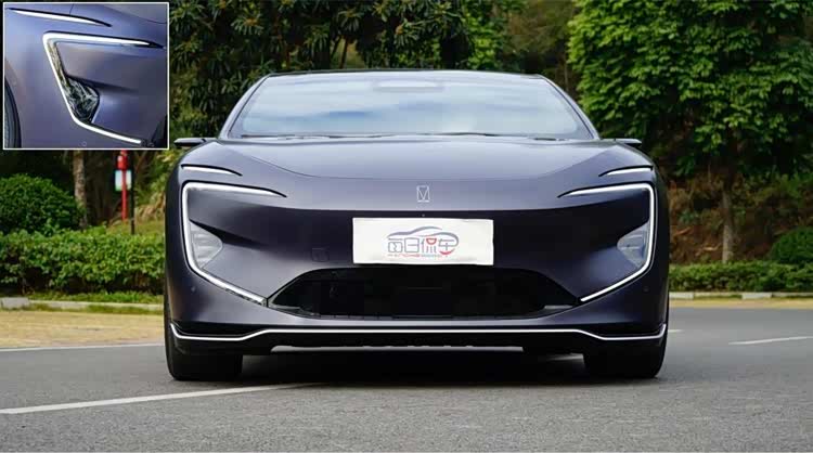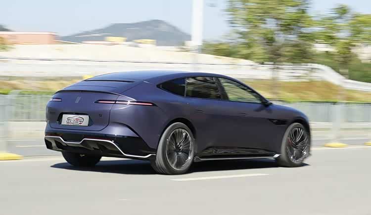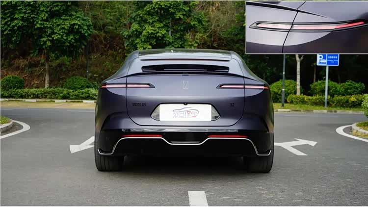 车尾十分炫酷,取消了常规的尾窗,由流媒体后视镜显示后方视野。尾盖边缘增加了电动升降尾翼,可手动控制也可自动,提升高速下压力。整个尾部造型犹如一张脸,相当有设计感,底部弯折的裙边起到画龙点睛的效果。