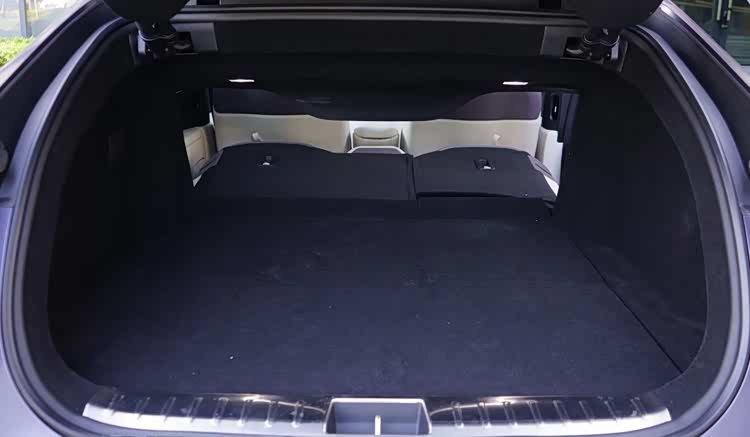 尾厢常规容积仅有350L,纵深不错,高度与宽度都比较有限,即使加上65L的前备厢,长途旅行也依然吃紧。不过尾门开口较大,后排座椅支持4:6分割放倒,平整度较高,可放置较长较扁的物品。标配带位置记忆的电动尾门。