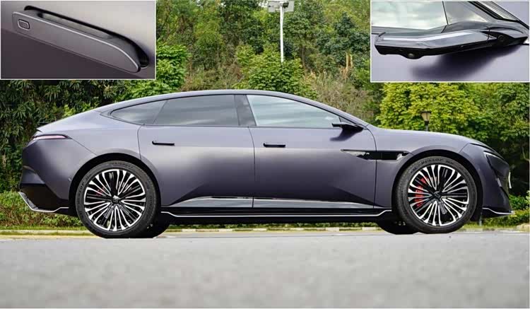 侧面造型与Panamera相似,由于长度充分,大溜背车身十分流畅。车身高度很低,加上短前悬与长后悬的比例,整体姿态十分运动。四个无框车门与整体调性吻合,后窗采用隐私玻璃,门把手是隐藏弹出式,前翼子板处安置激光雷达与摄像头。这台车还选装了十分前卫的电子后视镜,薄薄一片很有未来感,在我们拍摄的时候引起了众多路人的围观。