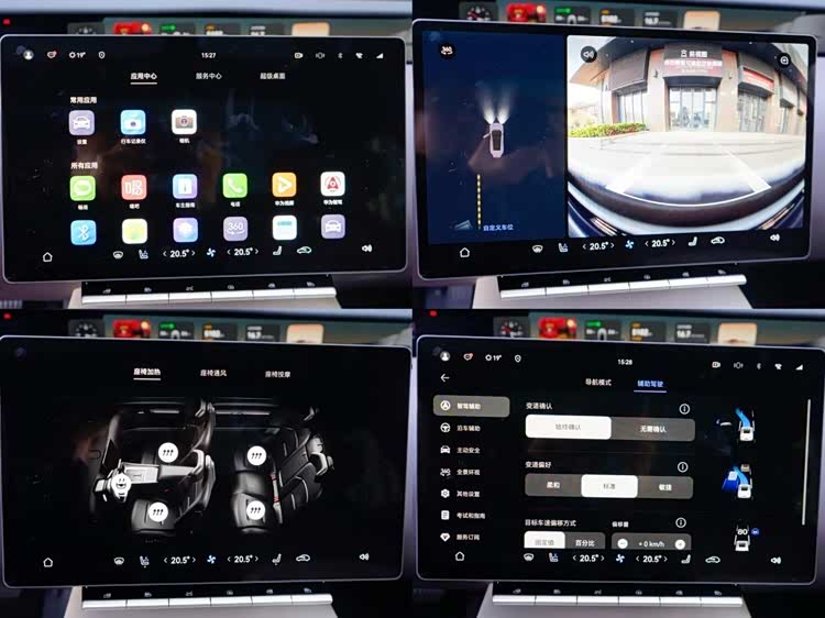 15.6英寸中控屏边框很窄,采用鸿蒙系统,触控流畅灵敏、上网速度和语音识别反馈都很快,集成化的程度也非常高,所有硬件都可触屏操作,支持4音区定位和连续对话,实现可见即可说。