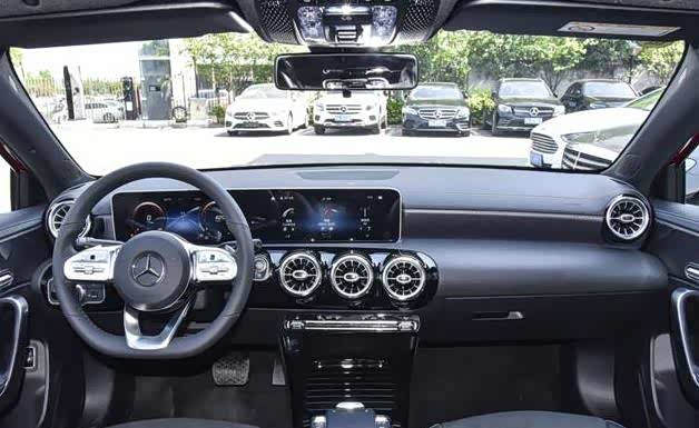 在内饰的设计上,奔驰已经把豪华精致拿捏很死死。即便是入门车型,奔驰也下放了连体大屏的设计,再加上飞机引擎式的空调出风口,整个豪华科技氛围烘托的很好。也很受现在年轻人的喜欢。大部分车型都是皮质的方向盘,并且全系标配有换挡拨片,确实没有想到。毕竟动力也不是很强。另外就是彩色10.25英寸的全液晶仪表盘,优点很明显,清晰流畅,动画效果好。缺点就是没有遮光板,阳光强烈的情况下,反光明显。