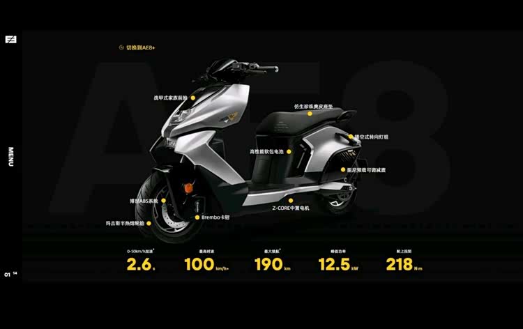 高速电摩的赛道主要是以传统摩托车企业跨界打造的电动车品牌为主,尽管雅迪、爱玛这些主流的电动车品牌也有高速电摩产品推出,春风摩托车旗下的电动品牌ZEEHO(极核),推出了品牌的首款高速电摩AE8 。