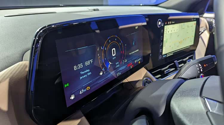 如图所示,新一代探界者配备了新的三辐方向盘、11英寸数字仪表盘和11.3 英寸中控触摸屏,它们使驾驶室看起来更现代和更有科技感。这款新车还采用了时尚的仪表面板设计,线条流畅,触感柔和。它们还配有实体空调控制装置和涡轮式通风口。
