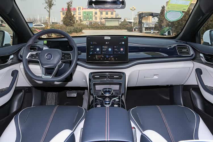 比亚迪秦PLUS整体采用Y以型座舱布局,如果纵向来看类似于游艇设计,使用深浅双色搭配,除了层次感分明以外,还给人一种年轻时尚的感觉,座椅上的缝线清晰可见,值得一提的是软性材质覆盖率比较高,在一定程度上可以增加乘坐舒适性,方向盘是皮质的,支持上下+前后调节。