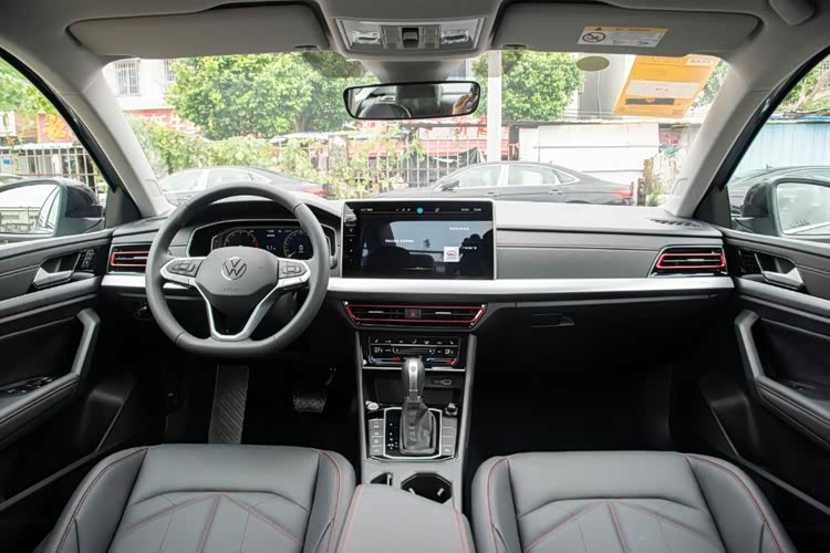 内饰设计部分,大众朗逸的中控台区域搭载了三辐式平底方向盘、10.25英寸液晶仪表(低配车型使用8英寸仪表)、12英寸悬浮中控屏(低配车型使用8英寸中控屏)。同时,新车还提供了旋钮或触摸面板空调控制方式,并且继续采用了机械式换挡机构。除此之外,新车还搭载了MOS 3.X 智慧车联系统,支持GPS在线导航、手机互联映射、OTA升级、语音识别控制、WIFI热点等功能。