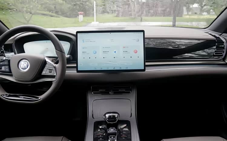 比亚迪汉简洁的中控台运用棱角分明的线条修饰,更有未来感。低配车型搭载的是12.3英寸全液晶仪表和12.8英寸中控屏,采用“蘑菇头”式的电子档把,让整个扶手台有很大的储物空间,功能实用性上更胜一筹。