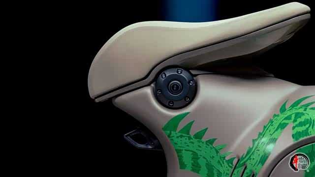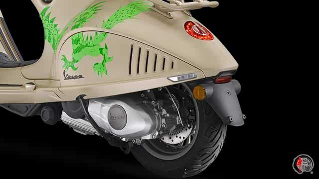 Vespa 946龙年车型与兔年车型相同,都是在946基础上采用了全新的涂装方案。全金属车身是Vespa 系列车型的一大特色,而此次则加入了代表吉祥的青龙图案,龙头从前脸延伸至车尾,为整车颜值增添了威武霸气的质感。与此同时也加入了诸如货架、车包等细节作为点缀。