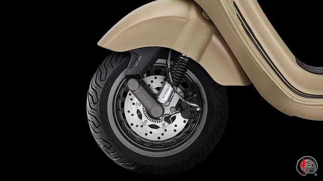 除了车身设计,减震系统也是Vespa品牌的一大亮点。其采用了一组前倾式单臂悬架和后扭力悬挂系统,这种设计不仅少见,而且比较先进,能够提供更好的悬架性能和乘坐舒适性。刹车系统采用220mm双盘制动,并配备双通道ABS以及ASR电子牵引力控制系统。
