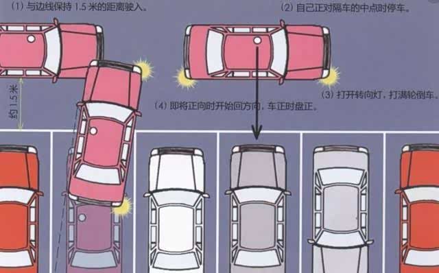 侧方停车:这是路边停车的常用方式,也是比较难的一种。一般有三个步骤,分别是:与停车位车尾平行,间隔0.5米时,向后倒车。自己车辆的倒车镜与停车车辆的前后门中柱平行时,向右打死方向。当车辆与车位停车成45度角时,向左打死方向,一直等车头摆正时,再回正方向。判断回正车身的时机,可以通过两种方法,一种是当后车的牌照出现在左后视镜中时,表示车身已到45度位置。另一种是当车头右前角与前车车尾对齐时候,表示车身已到45度位置。