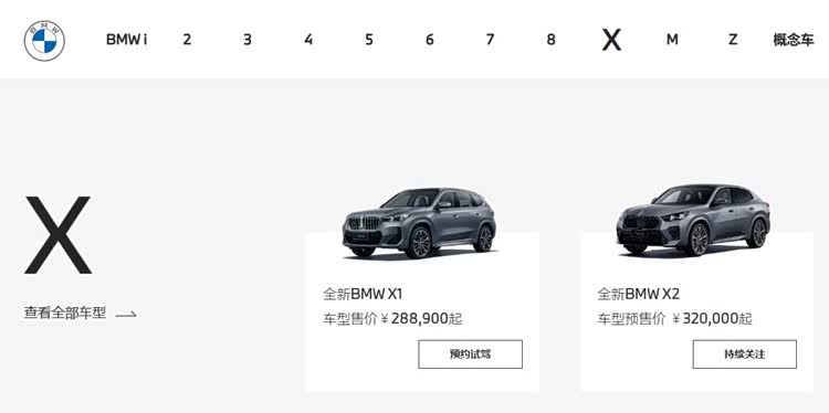 而从宝马官方网站,我们可以看到,宝马从i系列、1系、2系、3系、4系、5系、6系、7系、8系、X系、M系、Z系等十几个车系、几十款车型。