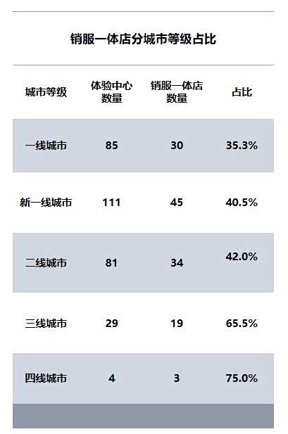 特斯拉2023年一线及新一线城市共计196家体验中心,占特斯拉体验中心总量63%;196家门店总计销量为404011台,占其总销量的66%。我们从特斯拉的渠道可以看出,其在一线、新一线城市布局渠道是采取“饱和式打法”。