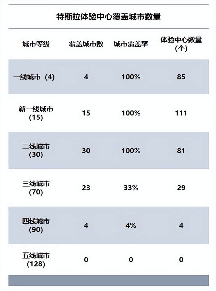 不止如此,特斯拉在城市渠道布局及渠道数量上也是极度克制。