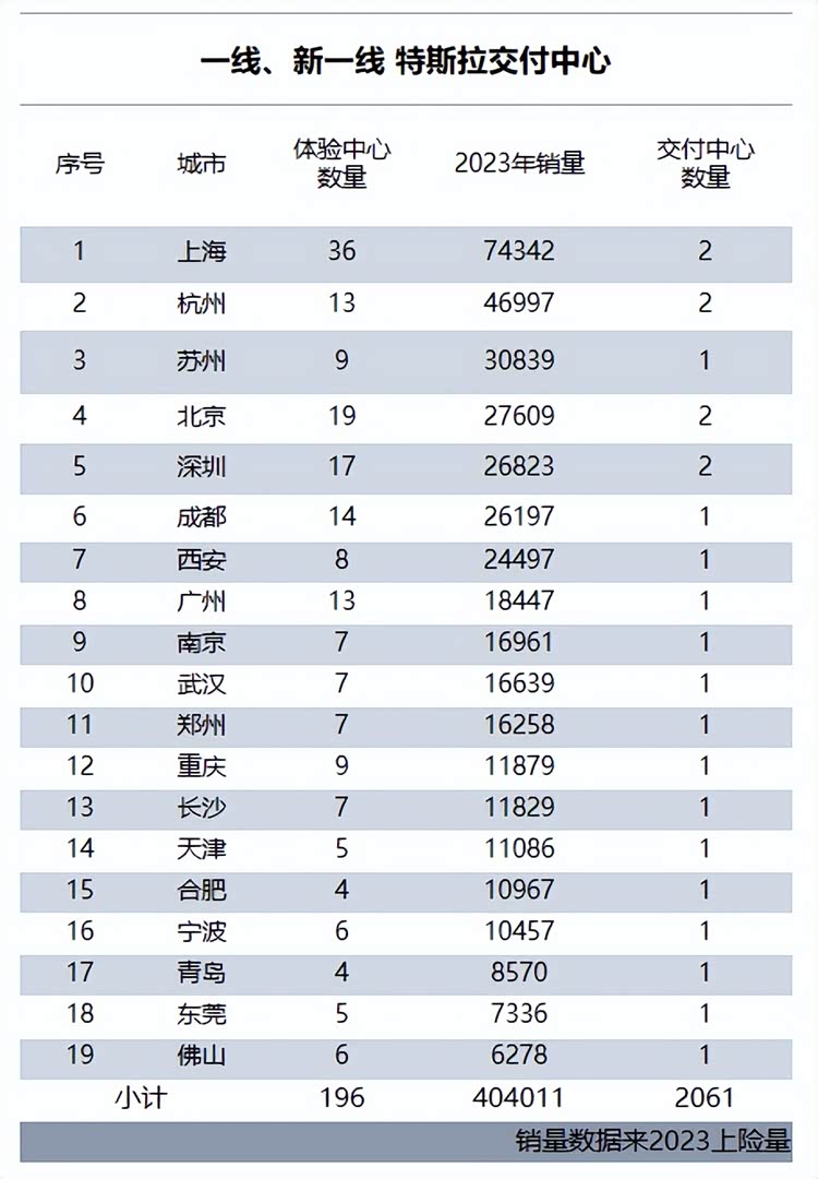 特斯拉具有两个交付中心的城市只有上海、深圳、北京、杭州,其他城市最多只有一个交付中心。在一线、新一线城市,特斯拉都有专属交付中心,和体验中心、服务中心基本不在一起。