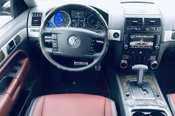 这是这辆2008款的大众途锐W12顶级型的驾驶室全貌,6.0L排量,当年被称为大怪兽,因为它有着600牛顿米的大扭矩,零百加速仅需5.9秒,自重大底盘整,这个零百加速成绩可能不如一般的V8轿车,其实6.0L12缸是一种震慑,匹配6AT,带S挡,带换挡拨片,不闯挡,车主告诉我们就是现在这辆车也不怎么烧机油,当年落地超180万元,因为买它的人都是冲着W12引擎来的,因为这是一种高贵的象征。