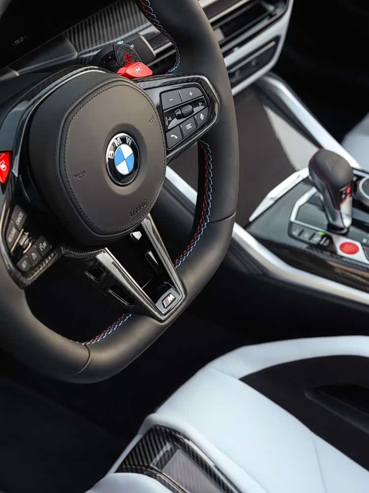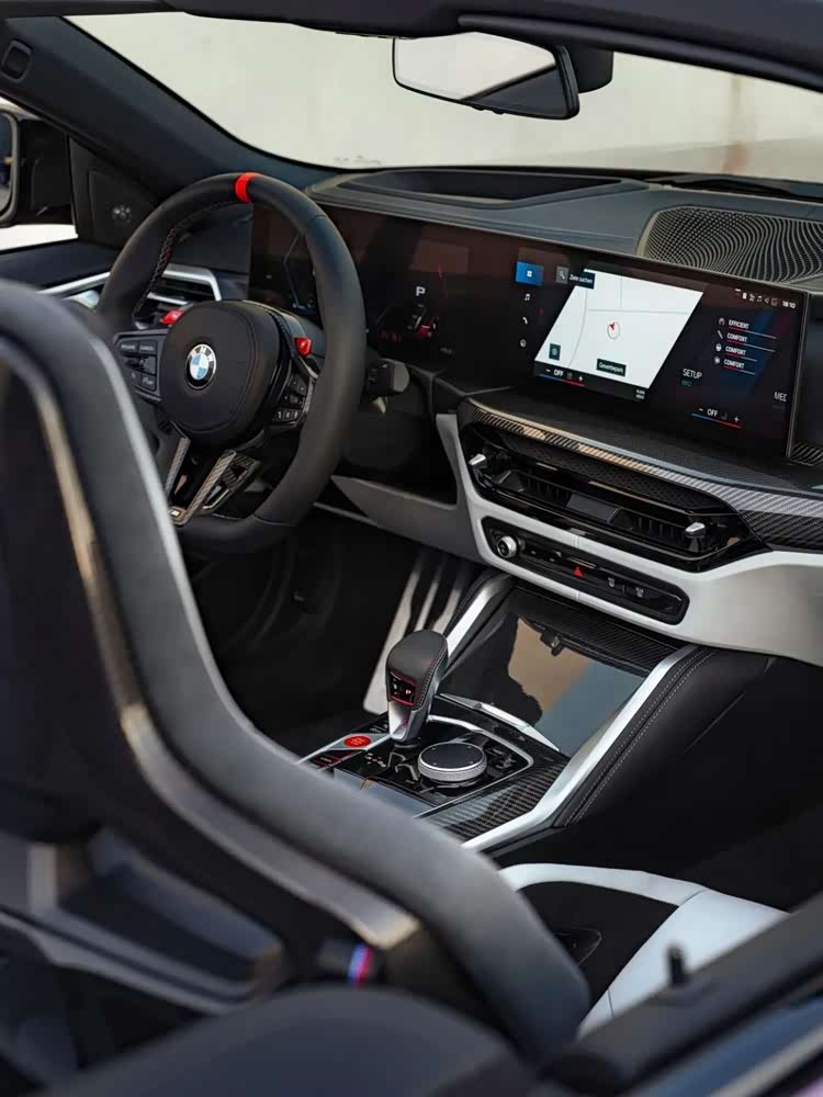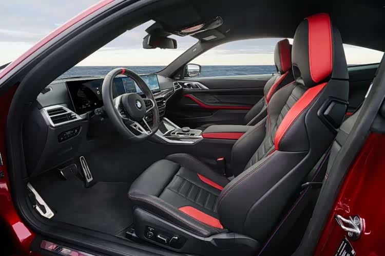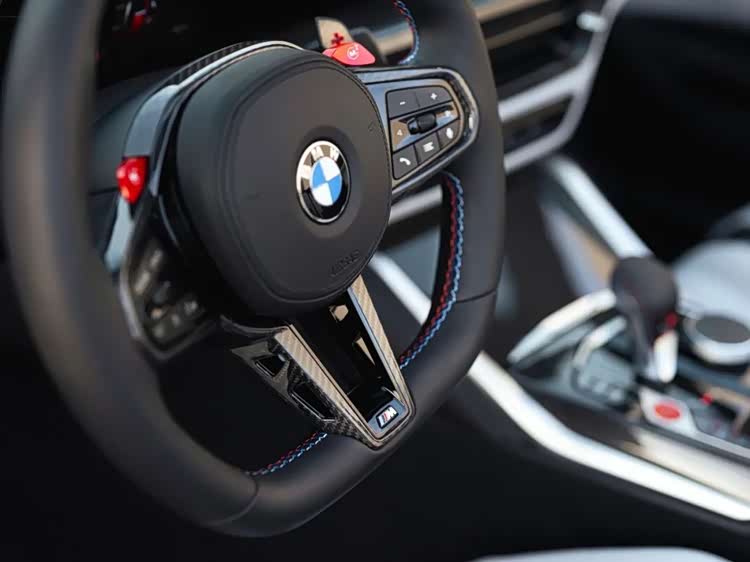 无论是新4系还是新M4,都采用了近乎平底设计的M多功能方向盘,但两侧的按键仍与现款同步。其中新M4采用红色回正标设计以区分,并延续了M1/M2两个个性设置键。